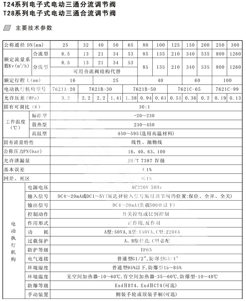 T24-16C,T24-40C,T24-63C,T24-100C,T28-16C,T28-40C,T28-63C,電子式電動(dòng)三通分流調(diào)節(jié)閥