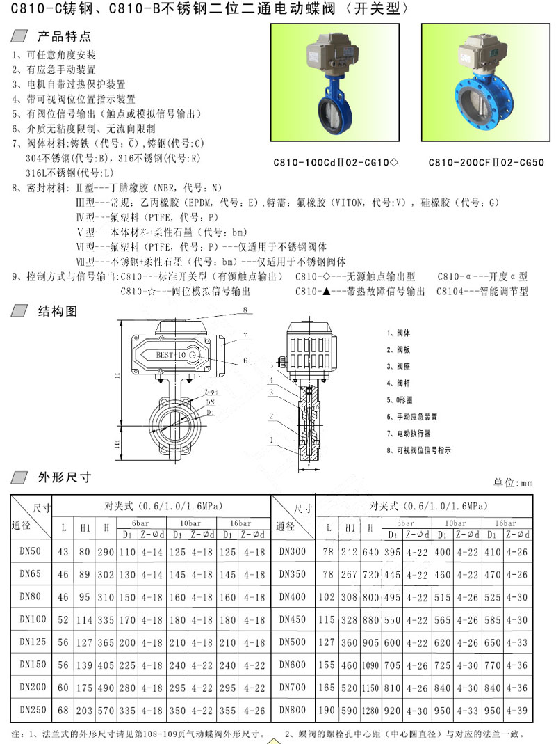 C810-50,C810-65,C810-80,C810-100,C810-125,C810-150,不銹鋼電動(dòng)蝶閥