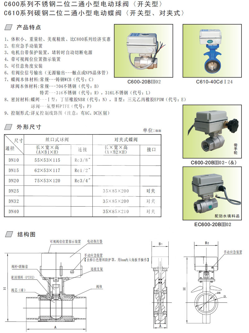 C600-10,C600-15,C600-20,C610-25,C610-32,C610-40,二位二通小型電動閥