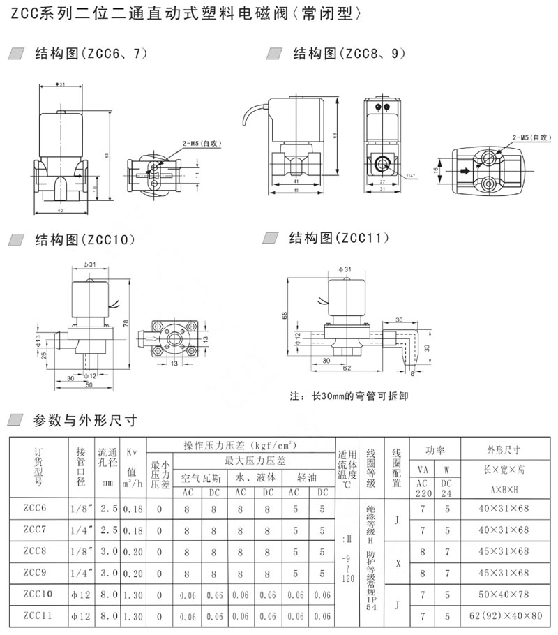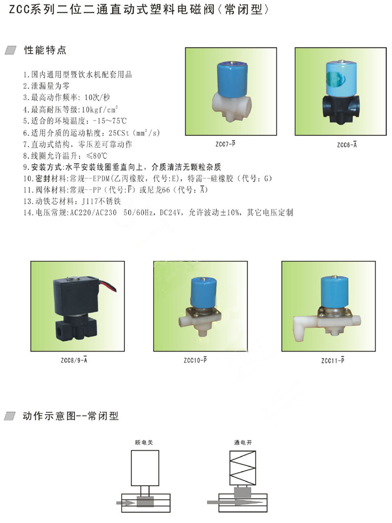 ZCC6,ZCC7,ZCC8,ZCC9,ZCC10,ZCC11,直動活塞式塑料電磁閥