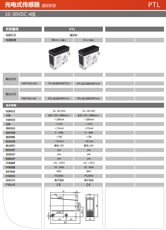 PTL-BC80DNRT3-D,PTL-BC200DNRT3-D,PTL-BC80DPRT3-D,PTL-BC200DPRT3-D,光電式傳感器 |