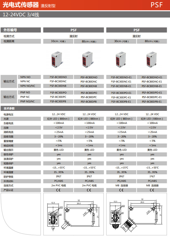 PSF-BC30DNO,PSF-BC30DNC,PSF-BC30DNB,PSF-BC30DPO,PSF-BC30DPC,PSF-BC30DPB,光電式傳感器 |