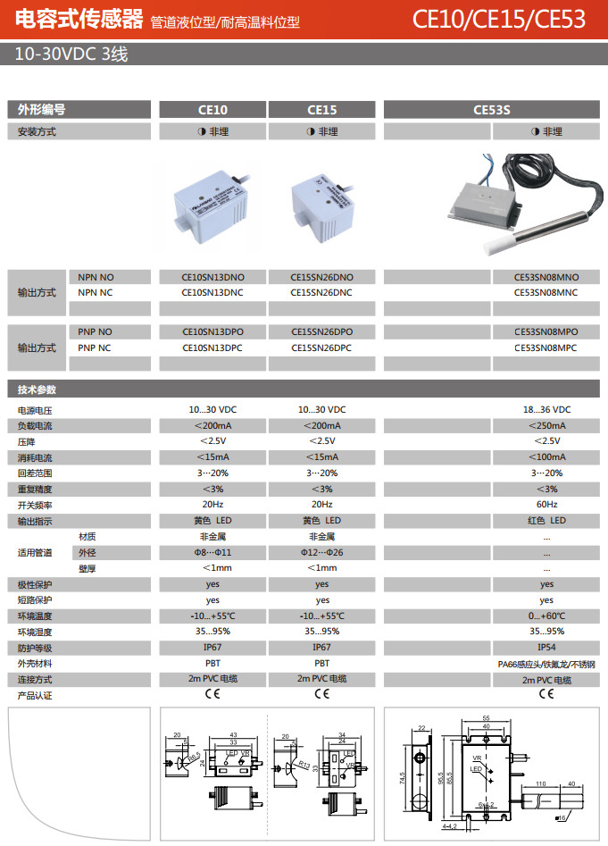 CE10SN13DNO,CE10SN13DNC,CE15SN26DNO,CE15SN26DNC,CE10SN13DPO,CE10SN13DPC,CE15SN26DPO,電容式傳感器