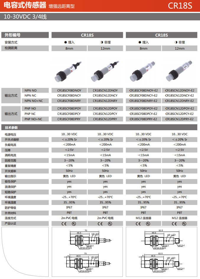 CR18SCF08DNOY,CR18SCF08DNCY,CR18SCF08DNRY,CR18SCF08DPOY,CR18SCF08DPCY,CR18SCF08DPRY,電容式傳感器 |