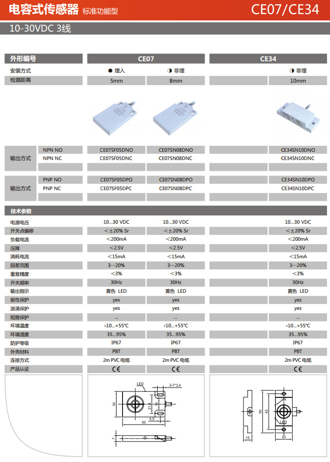 CE07SF05DNO,CE07SF05DNC,CE34SN10DPO,CE34SN10DPC,CE07SN08DPO,CE07SN08DPC,CE07SF05DPO,電容式傳感器 |