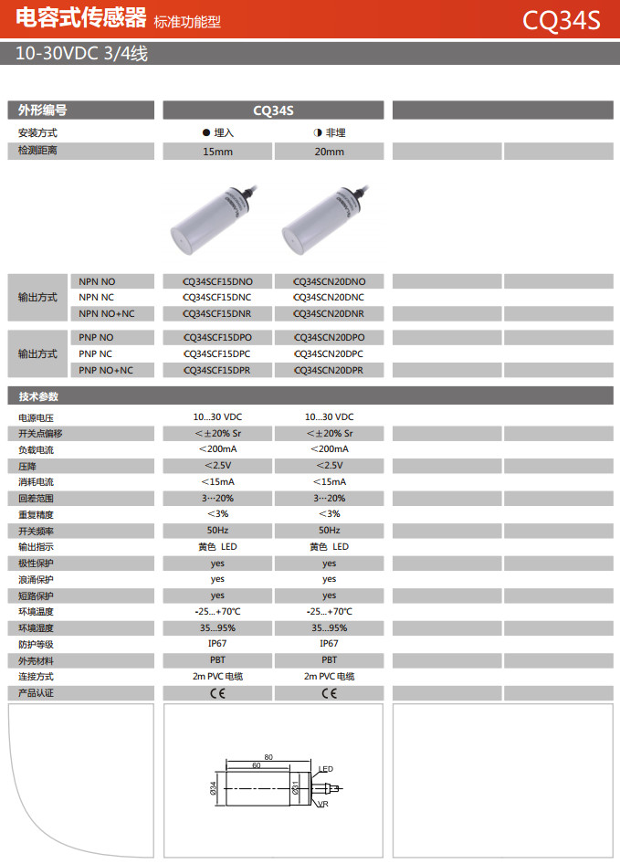 CQ34SCF15DNO,CQ34SCF15DNC,CQ34SCF15DNR,CQ34SCF15DPO,CQ34SCF15DPC,CQ34SCF15DPR,電容式傳感器 |