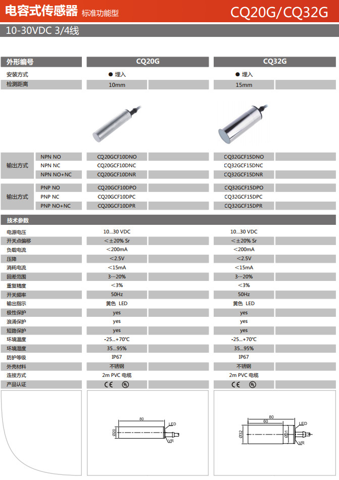 CQ20GCF10DNO,CQ20GCF10DNC,CQ20GCF10DNR,CQ20GCF10DPO,CQ20GCF10DPC,CQ20GCF10DPR,電容式傳感器 |