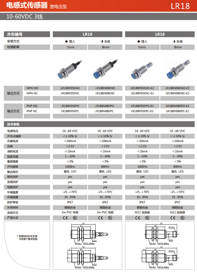 LR18BF05ENO,LR18BF05ENC,LR18BF05EPO,LR18BF05EPC,LR18BN08ENO,LR18BN08ENC,LR18BN08EPO,電感式傳感器