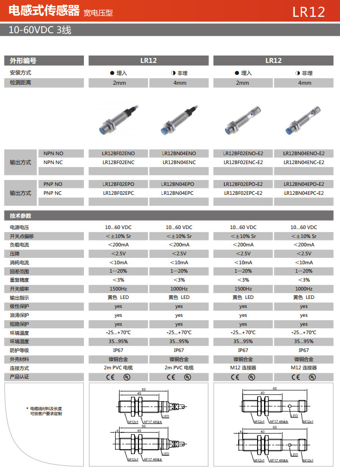 LR12BF02ENO,LR12BF02ENC,LR12BF02EPO,LR12BF02EPC,LR12BN04ENO,LR12BN04ENC,LR12BN04EPO,電感式傳感器
