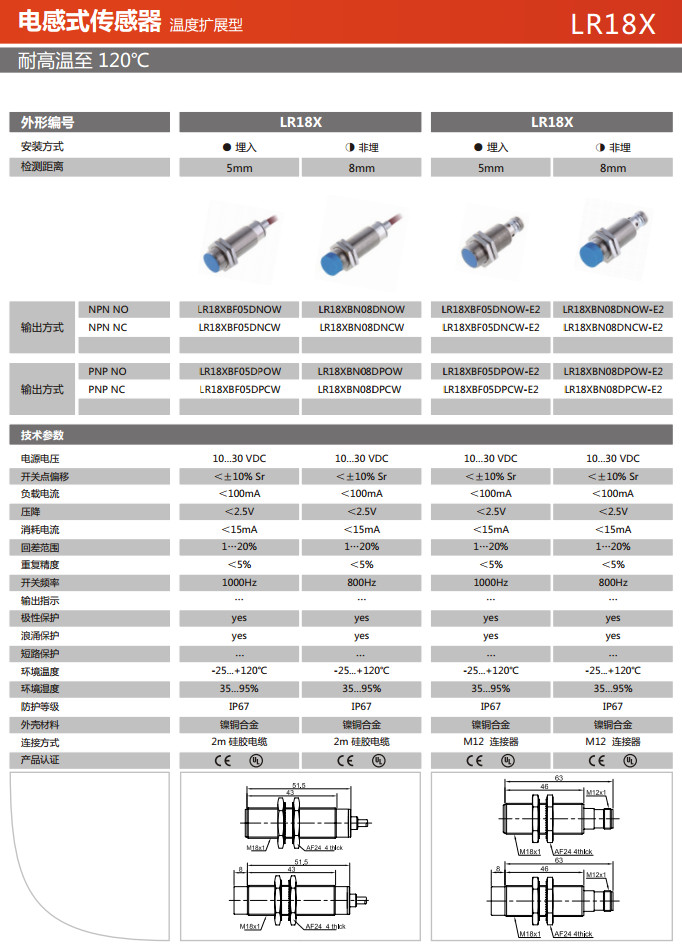 LR18XBF05DNOW,LR18XBF05DNCW,LR18XBF05DPOW,LR18XBF05DPCW,LR18XBN08DNOW,電感式傳感器
