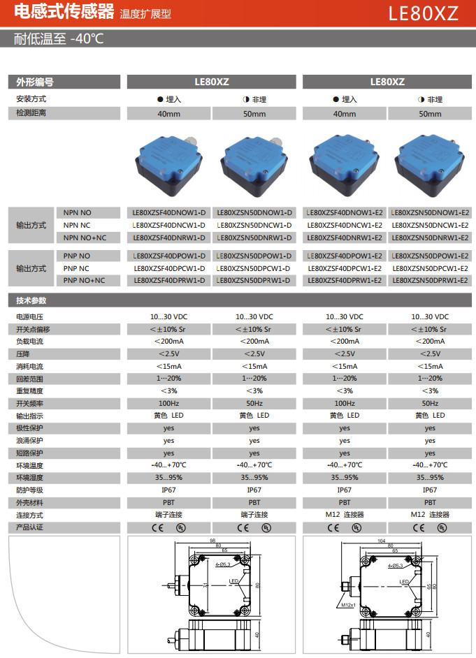 LE80XZSF40DNOW1-D,LE80XZSF40DNCW1-D,LE80XZSF40DNRW1-D,LE80XZSF40DPOW1-D,電感式傳感器 |
