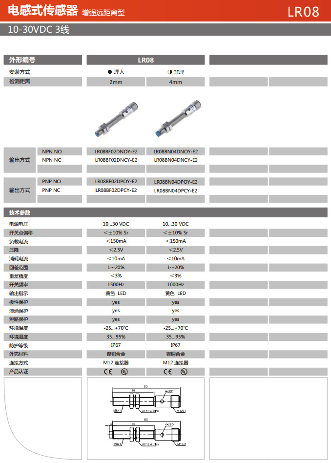 LR08BF02DNOY-E2,LR08BF02DNCY-E2,LR08BN04DNOY-E2,LR08BN04DNCY-E2,LR08BF02DPOY-E2,電感式傳感器