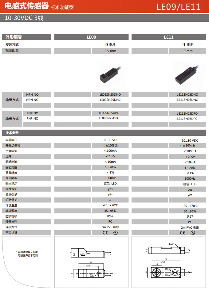 LE09SN25DNO,LE09SN25DNC,LE11SN03DNO,LE11SN03DNC,LE09SN25DPO,LE09SN25DPC,LE11SN03DPO,LE11SN03DPC,電感式傳感器