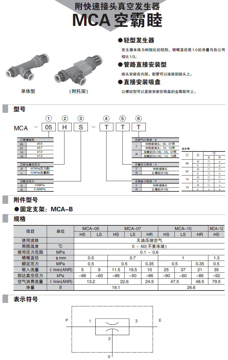 MCA-05HS,MCA-07HS,MCA-10HS,MCA-13HS,MCA-05LS,MCA-07LS,MCA-10LS,真空發(fā)生器