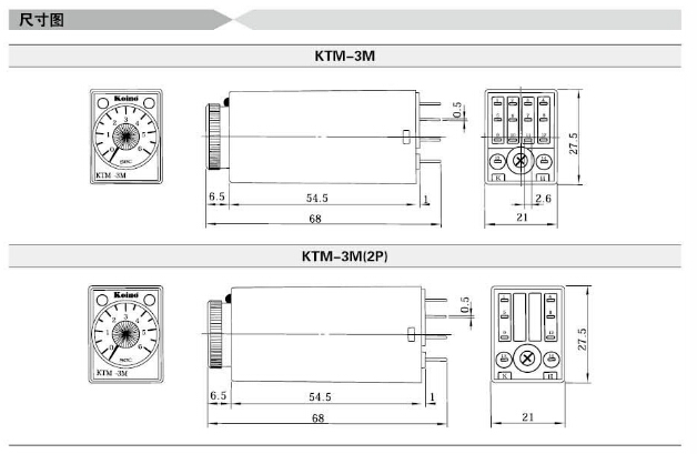 KTM-3M-01S,KTM-3M-06S,KTM-3M-03M,KTM-3M-05M,KTM-3M-12H,KTM-3M-24H,KTM-3M-10S,KTM-3M-12S,微型時間繼電器 |