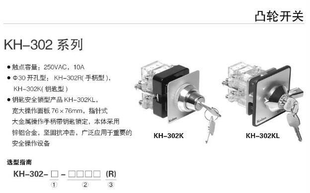 KH-302V-2,KH-302V-3,KH-302V-33,KH-302CL-1,KH-302A-2,KH-302A-3,KH-302A-33,KH-302C-1,Koino凸輪開關(guān)