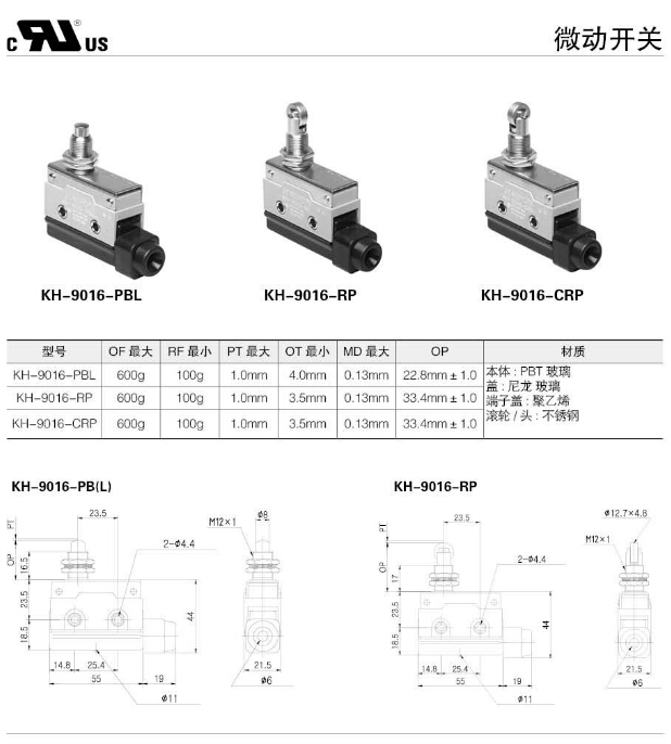 KH-9016-PBL,KH-9016-RP,KH-9016-CRP,KH-9016-HL,KH-9016-HLL,KH-9016-HRL,KH-9016-HRS,Koino微動開關(guān) |
