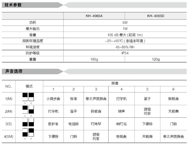 KH-4065A,KH-4065D,Koino 多音信號(hào)揚(yáng)聲器