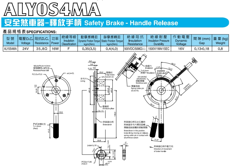 ALY0S4MA,安全剎車器附釋放手柄