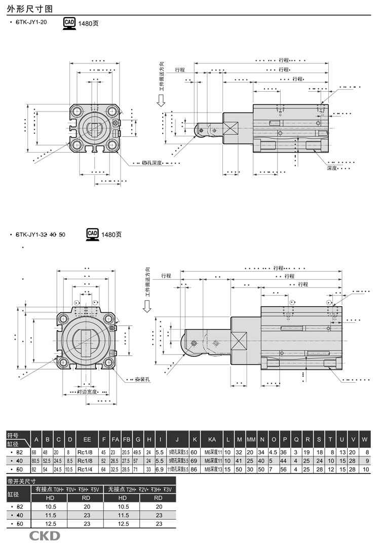 STK-JY1-20-10,STK-JY1-32-10,STK-JY1-40-20,STK-JY1-50-20,STK-JY1-20-15,STK-JY1-40-25,CKD止動氣缸