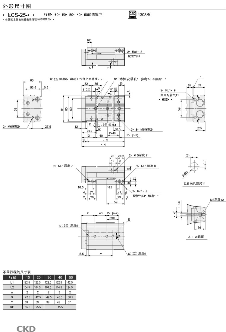 LCS-F-12-10,LCS-F-16-10,LCS-F-20-10,LCS-F-25-10,LCS-F-12-20,CKD線性滑臺氣缸