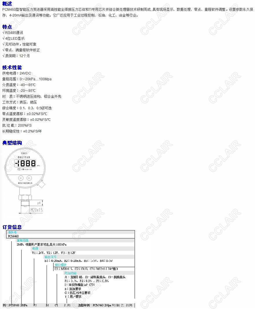 PCM460-2MPa-V1-B1-C1,PCM460-2MPa-V1-B1-C2,PCM460-2MPa-V1-B1-C3,PCM460-2MPa-V1-B2-C1,PCM460型智能壓力變送器 |
