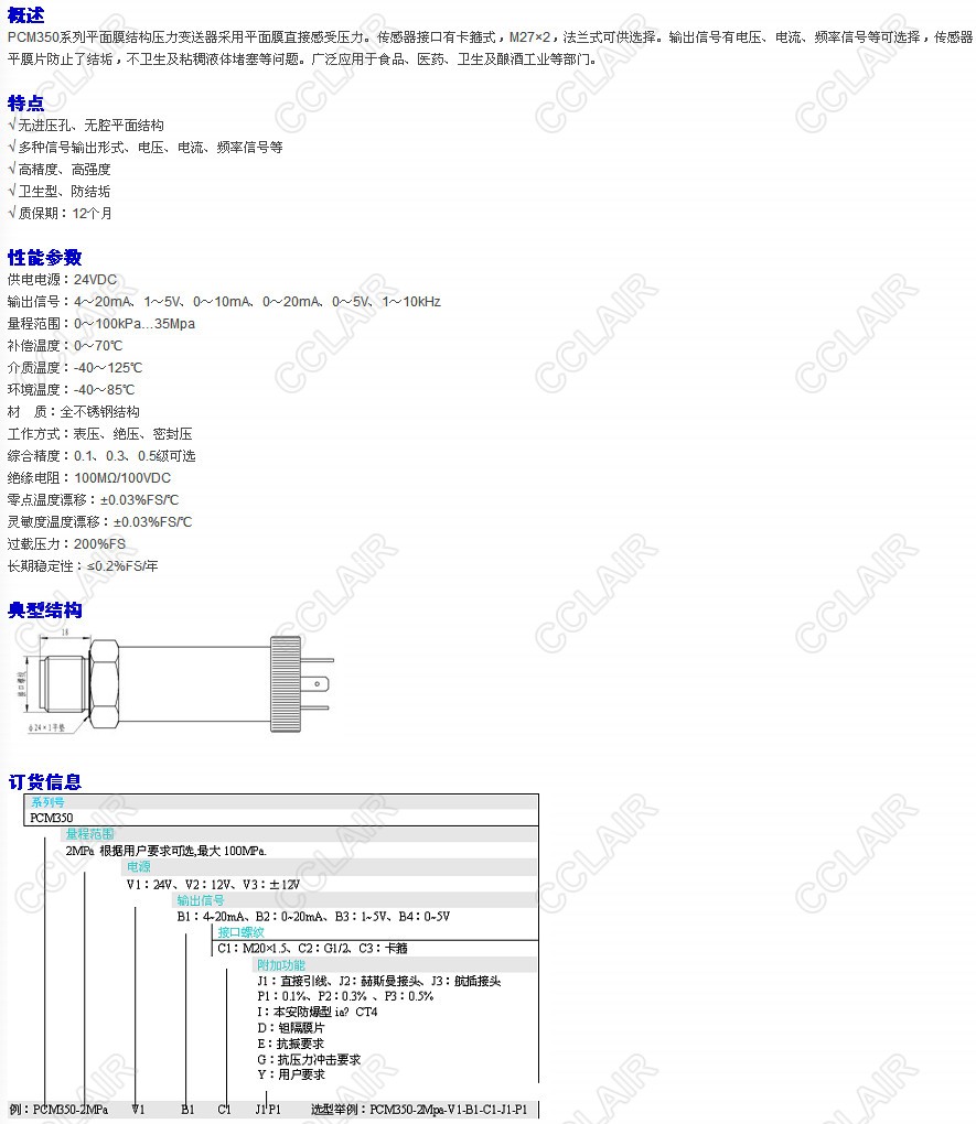 PCM350-2MPa-V1-B1-C1,PCM350-2MPa-V2-B1-C1,PCM350-2MPa-V3-B1-C1,PCM350型衛(wèi)生壓力變送器 |