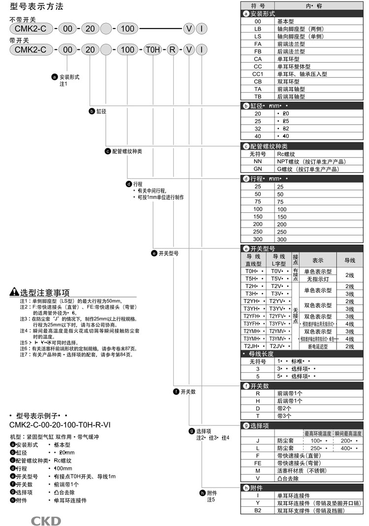 CMK2-C-00-20-25,CMK2-C-00-20-50,CMK2-C-00-20-75,CMK2-C-00-20-100,CMK2-C-00-20-150,CKD緊固型氣缸