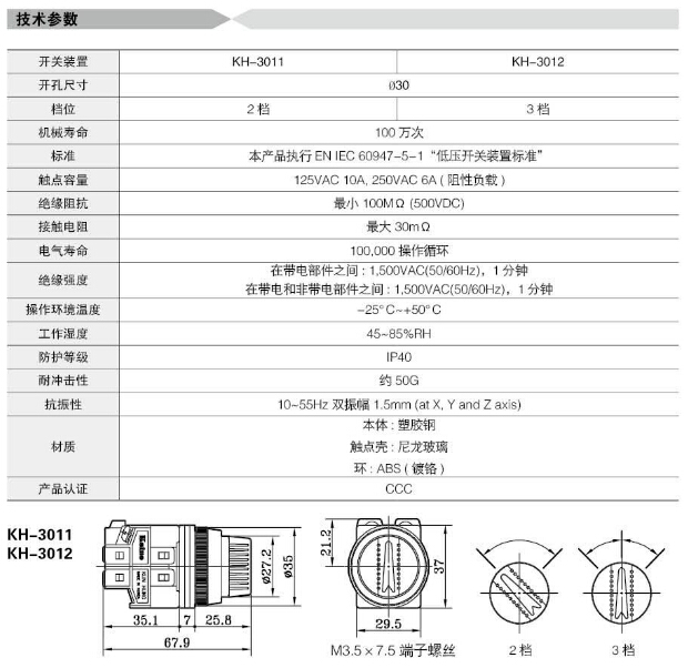 KH-3011,KH-3012,Koino Φ30重負(fù)荷開(kāi)關(guān)