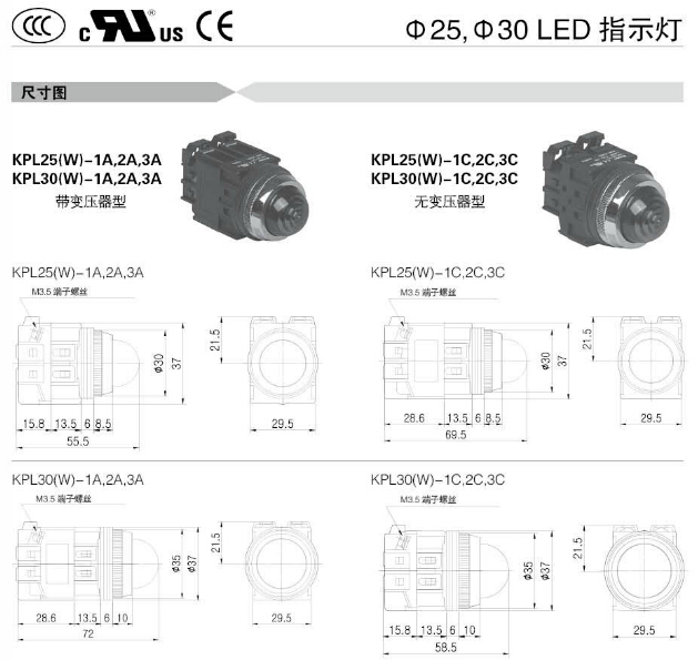 KPL25-1A,KPL30-1A,KPL25W-2A,KPL30W-2A,KPL25-3C,KPL30W-3C,KPL30-1C,Koino LED指示燈 |