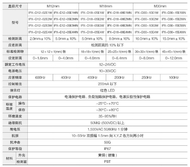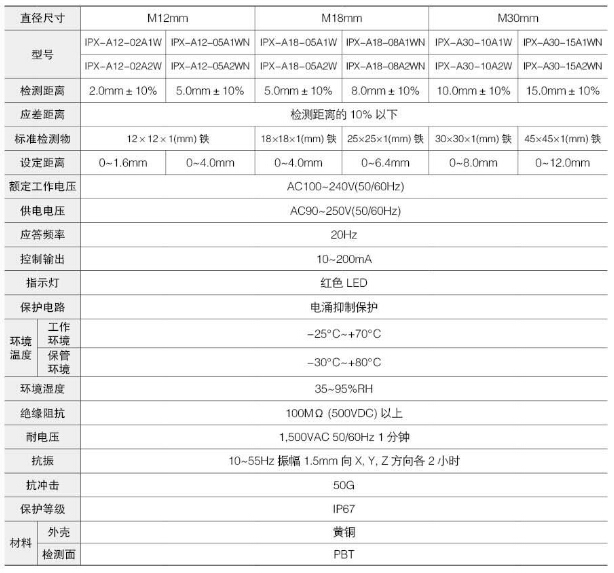 IPX-2D30-10A1W,IPX-A12-02A1W,IPX-A18-05A1W,IPX-A30-15A2WN,Koino圓柱形接近開關(guān) |