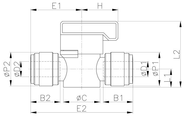 | Model | ¢D1 | ¢D2 | B1 | B2 | ¢P1 | ¢P2 | L1 | L2 | E1 | E2 | H | ¢C | WEIGHT(g) | BOX(EA) |
