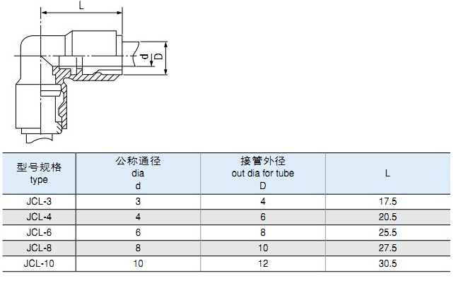 JCL-3,JCL-4,JCL-6,JCL-8,JCL-10,插入式直通管接頭
