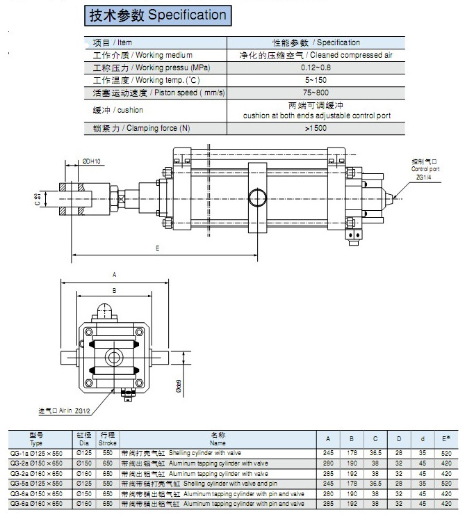 QG-1aΦ125×550,QG-2aΦ150×650,QG-5aΦ125×550,QG-6aΦ150×650,QG-6aΦ160×650,QG-2aΦ160×650,打殼氣缸