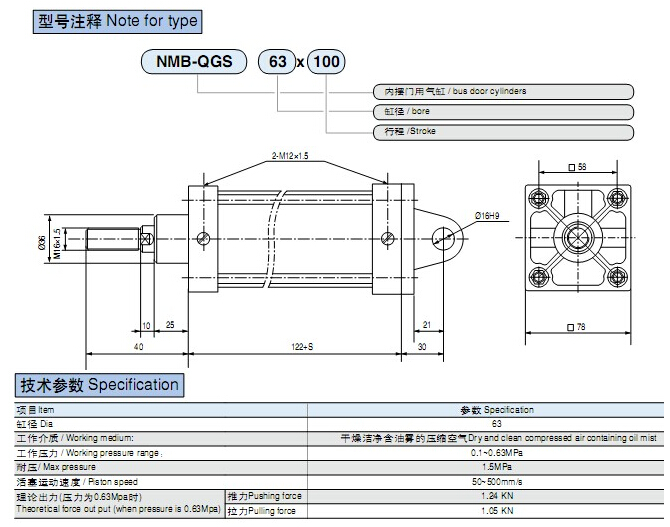 NMB-QGS63×100內(nèi)擺式門氣缸屬汽車行業(yè)的專用氣缸。滿足公交中巴車上開關(guān)門的需要,具有結(jié)構(gòu)緊湊、體積小巧、重量輕、工作可靠、運(yùn)動平穩(wěn)、外形美觀等特點,是客車制造業(yè)中實現(xiàn)自動化開關(guān)門的理想氣動元件。