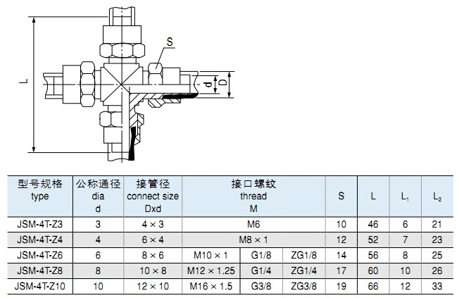 JSM-4T-Z3,JSM-4T-Z4,JSM-4T-Z6,JSM-4T-Z8,JSM-4T-Z10,鎖母式四通終端管接頭