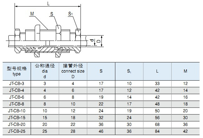 JT-CB-3,JT-CB-4,JT-CB-6,JT-CB-8,JT-CB-10,JT-CB-15,JT-CB-20,JT-CB-25,卡套式直通穿板管接頭