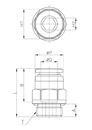 Model ∅D ∅P T L A B H1(Hex) H2(Hex) ORIFICE WEIGHT(g) EA(BOX)