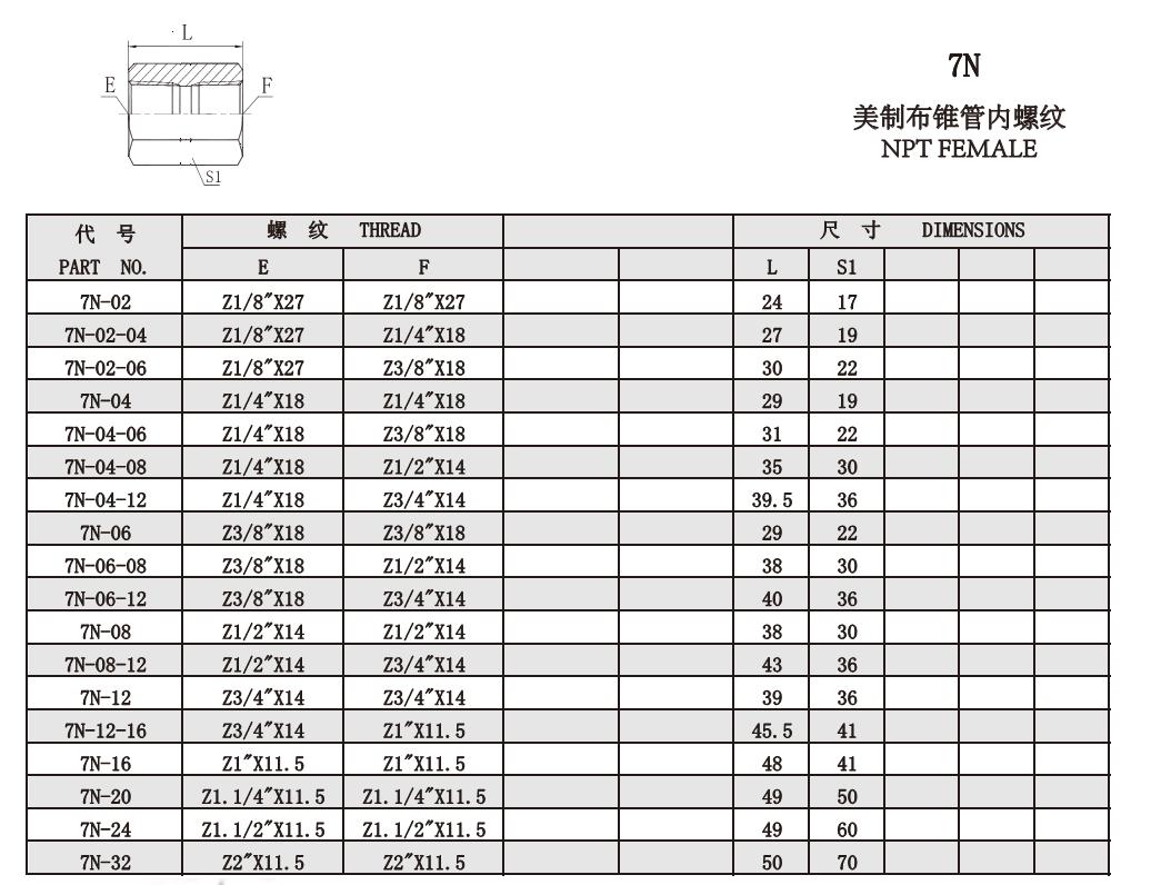 7N-02,7N-04,7N-06,7N-08,7N-12,7N-16,7N-20,7N-24,7N-32,內(nèi)螺紋接頭