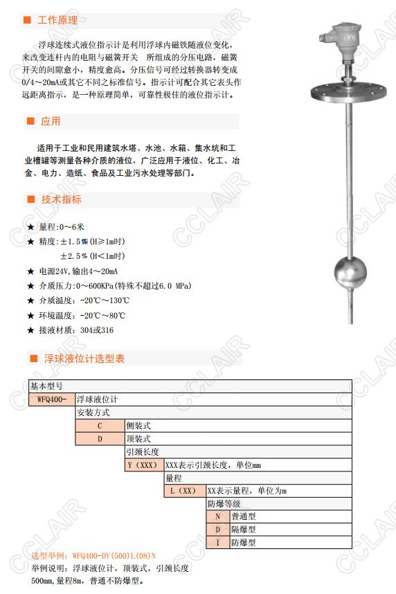 WFQ400-C,WFQ400-D,WFQ400-DY(500)L(08)N,浮球液位計(jì)