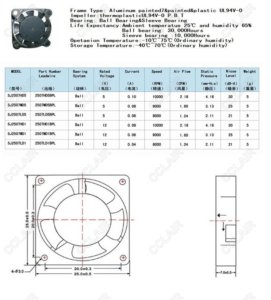 SJ2507HD5,SJ2507MD5,SJ2507LD5,SJ2507HD1,SJ2507MD1,SJ2507LD1,SJ2507,SANJI DC軸流風機 |