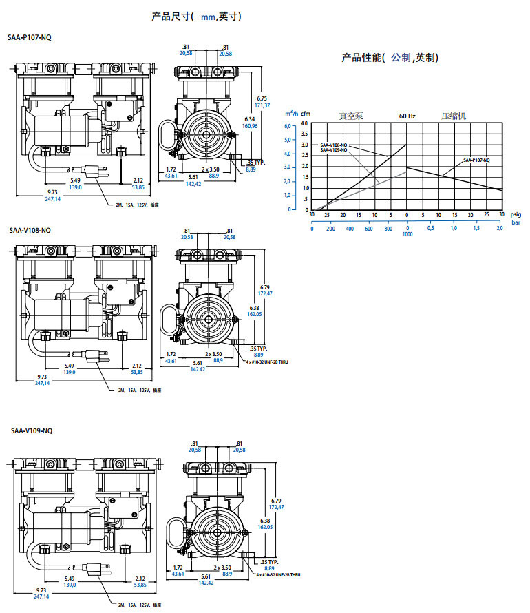 SAA-P107-NQ,SAA-V108-NQ,SAA-V109-NQ,搖擺活塞式壓縮機(jī)/真空泵