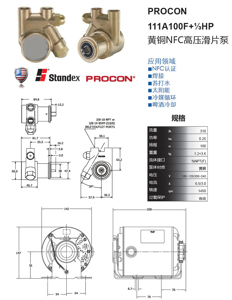 111A100F+⅓HP,黃銅NFC高壓滑片泵
