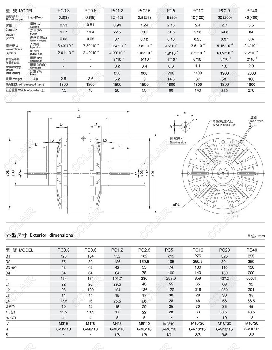 PC0.3,PC0.6,PC1.2,PC2.5,PC5,PC10,PC40,STEKI PC型磁粉離合器