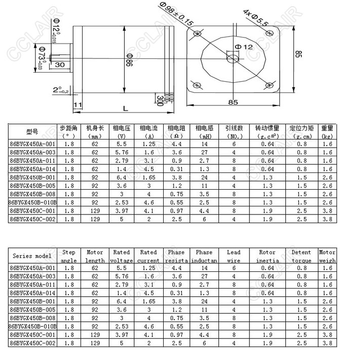 86BYGX450A-001,86BYGX450A-003,86BYGX450A-011,86BYGX450A-014,86BYGX450B-001,步進電機
