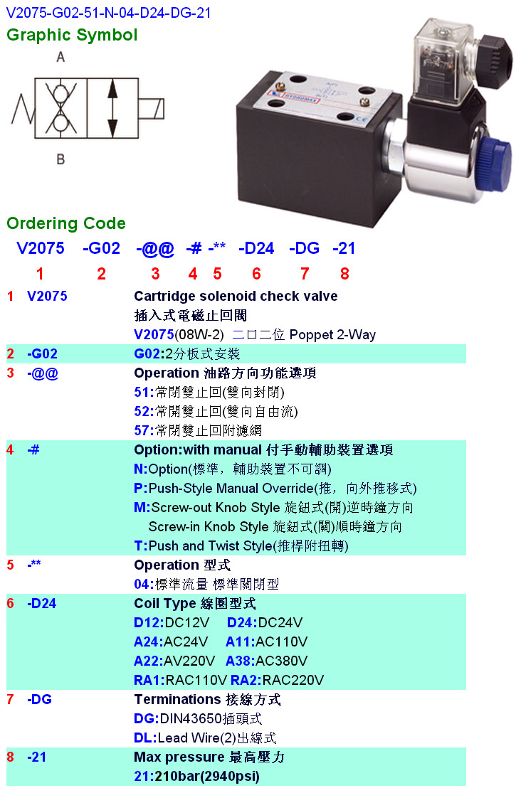 V2075-G02-51-N-04-D24-DG-21,V2075-G02-51-N-04,V2075-G02-52-N-04,V2075-G02-57-N-04,HYDROMAX插入式電磁止回閥 |
