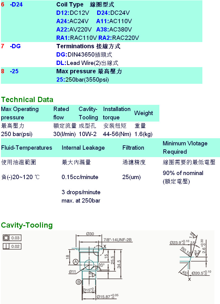 V3074-T04-21,V3074-T04-22,V3074-T04-23,V3074-T04-24,V3074-T04-20-S-N-D24-DG-25,HYDROMAX插入式電磁升降閥