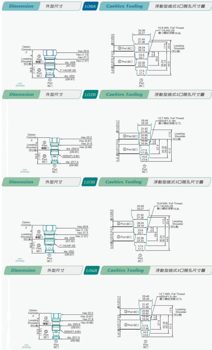 LO2A,LO2B,LO2C,LO3A,LO3B,LO3C,LO3D,LO3O,LO6A,LO6B,LO6C,LO6D,LO6O,LO8A,LO8B,LO8C,HYDROMAX插式常開型邏輯閥 |