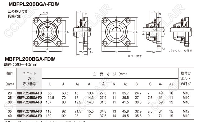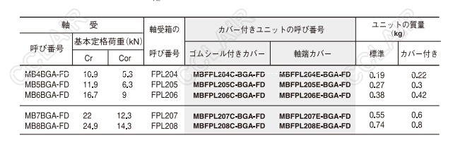 MBFPL204BGA-FD,MBFPL205C-BGA-FD,MBFPL208E-BGA-FD,MBFPL200BGA-FD,軸承