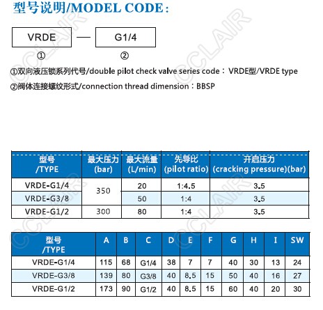 VRDE-G1/4,VRDE-G3/8,VRDE-G1/2,VRDE,雙向液壓鎖